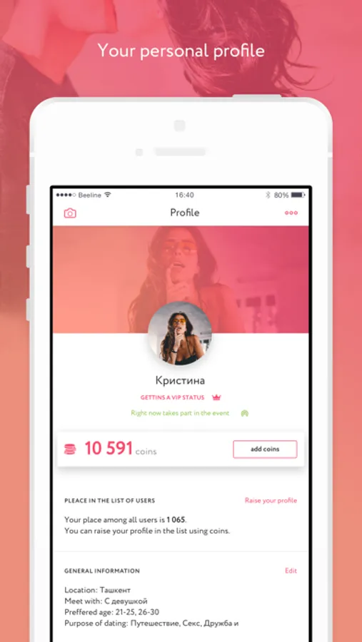 2. Raise your own profile in the general list, be in the first place, becoming the most popular in your city and get more new nice dating and account views.
