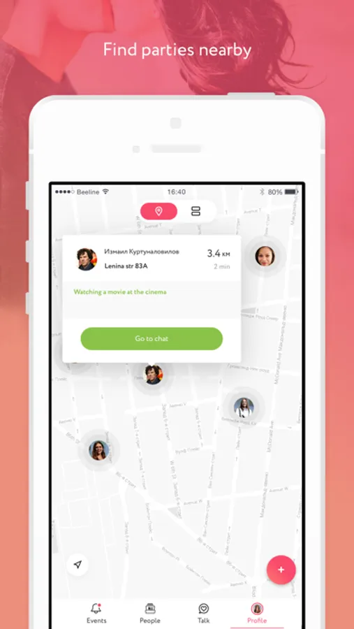 2. Create your own events and parties, mark them to a place on the map and then other people can join it;