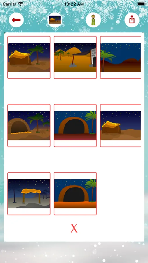 - Press on the middle button to change the image to decorate (change the tree, snowman, or nativity scene).