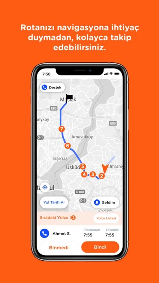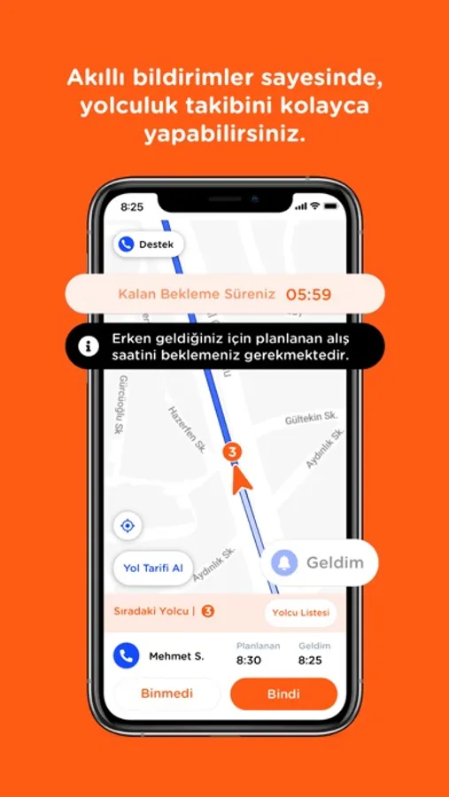 Yolcular sürücüleri uygulamadan görüntüleyebilir.