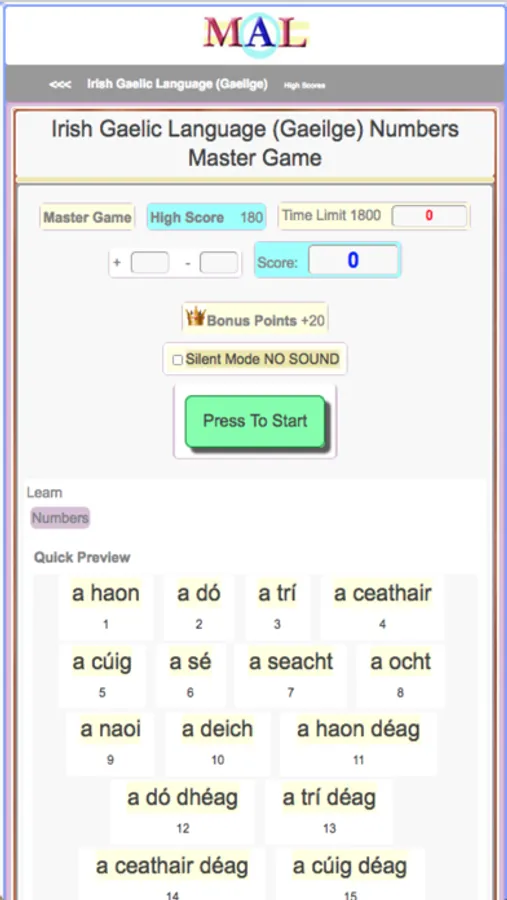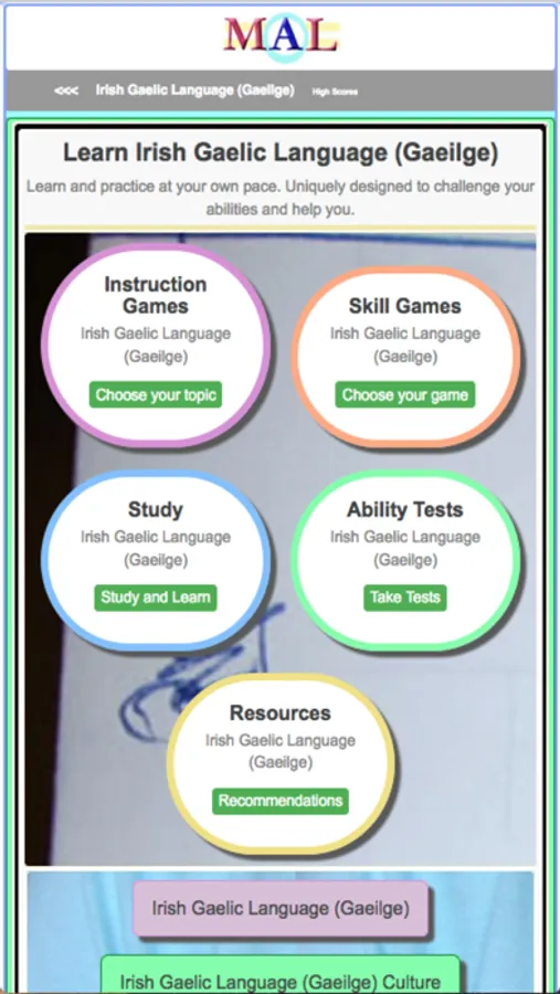 Play Irish Gaelic Learning Games, Study and Learn with online Flash cards, Take Irish Gaelic Tests