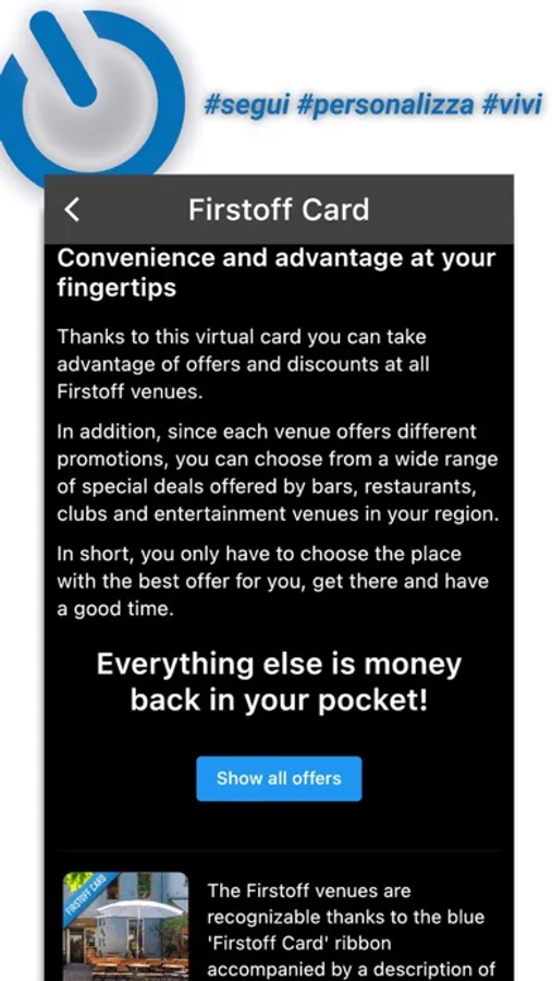 • Request the voucher-code in one of the affiliated venues to activate your personal FirstoffCard, you will now get discounts and offers in all Firstoff venues!