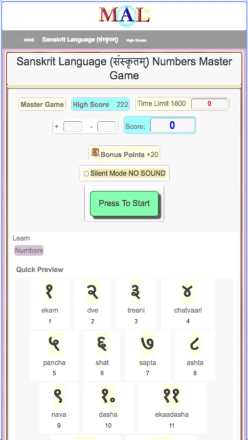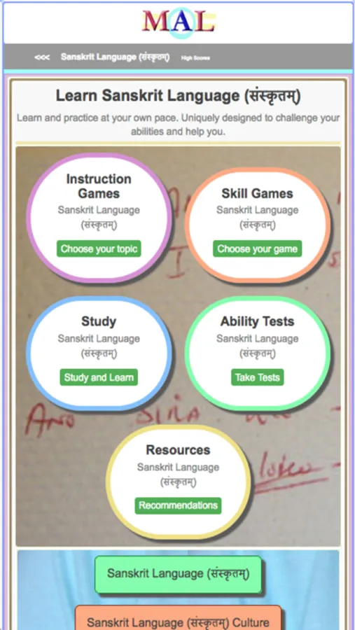 Play Sanskrit Learning Games, Study and Learn with online Flash cards, Take Sanskrit Tests