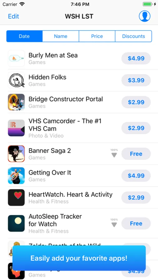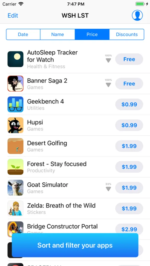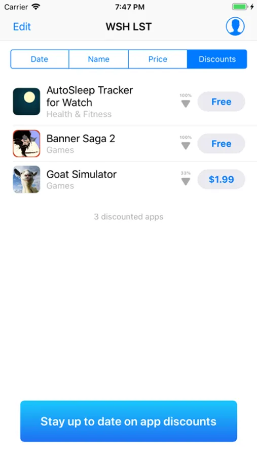 Upgrade to Price Notice annual subscription to receive push notifications when the apps you have added to WSH LST are discounted!