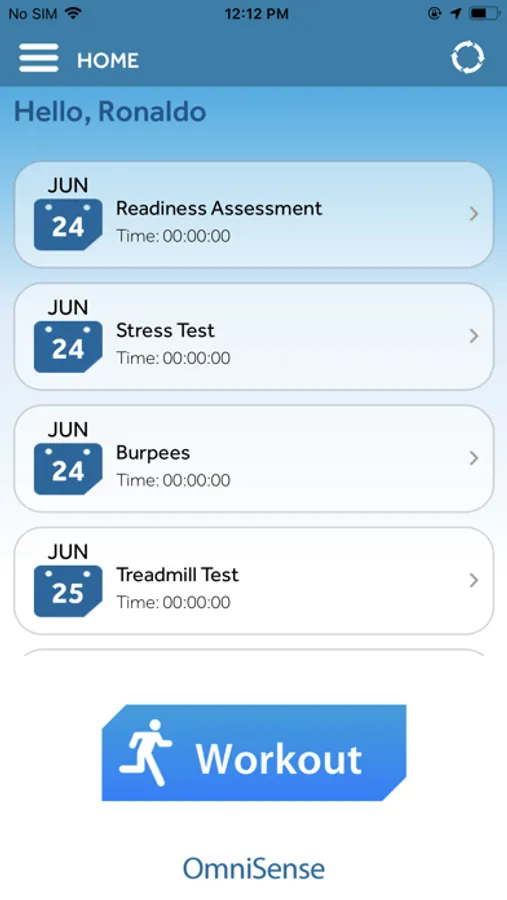 The OmniSense 5 system includes a PC based platform that can stream live data for up to 100 co-located athletes training in a sports field or gym and links it to a web based solution that includes a web portal and smartphone application. This application opens the door for remote coaching, training and monitoring by relaying training plans prescribed by coaches to remotely located athletes. The app features workout guidance, both audio and visual, to ensure an athlete can complete the workout as defined by the coach. Additionally, the app collects data from body worn sensors to upload workout data or assessment data to the coach for near real time or post workout session analysis.