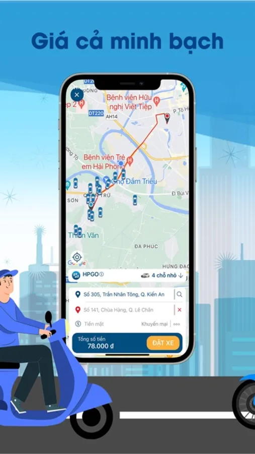 HPGo là ứng dụng đặt xe thông minh TẬP HỢP các hãng taxi chuyên nghiệp, đáp ứng đầy đủ yêu cầu di chuyển của khách hàng.