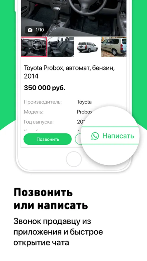 - Звонок из приложения и быстрое открытие чата с продавцом.