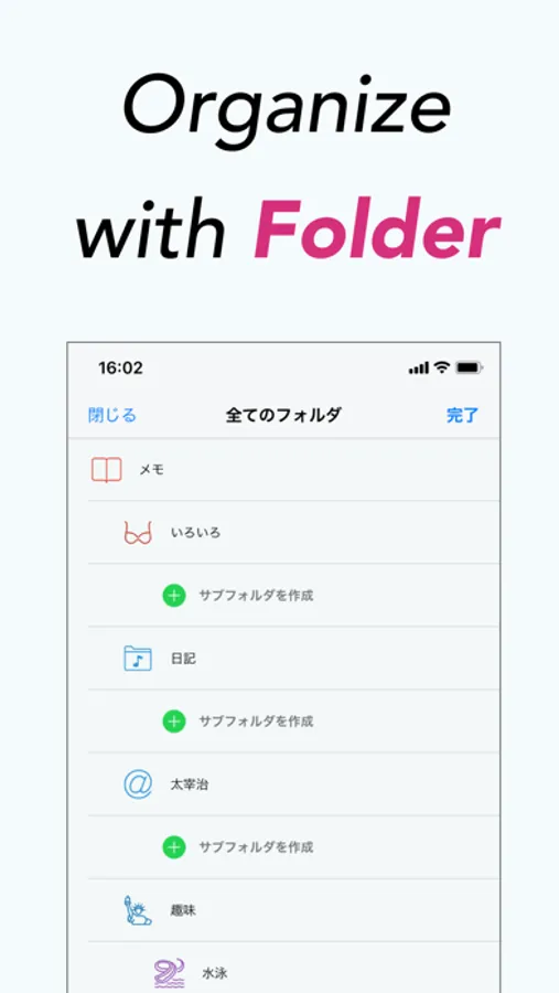 · Font change, size and color change (Can be set individually for folder unit and memo unit)