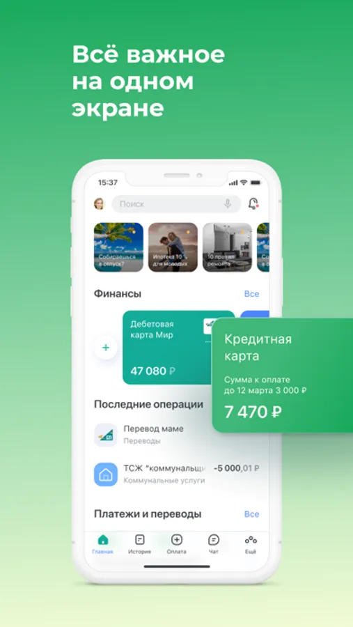 Удобные возможности: автосохранение карт для повторных переводов, сканирование QR-кодов в платежных документах, автопоиск счетов, налогов и штрафов ГИБДД для быстрой оплаты, шаблоны и автоплатежи для повторяющихся и регулярных операций, единая история операций с фильтрами и сквозным поиском, быстрый переход в личный кабинет. Банковские продукты 24/7: карты, счета, депозиты, страховки - частичное и полное погашение кредитов онлайн, возможность подключения уведомлений о штрафах и взысканиях.