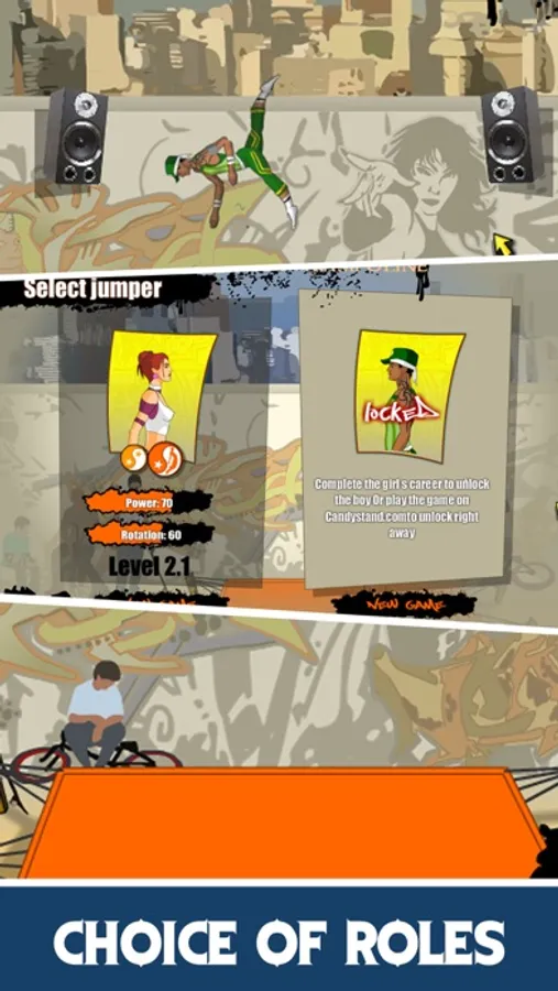 Your task is to jump as high as you can and perform amazing tricks in the air to get score points.