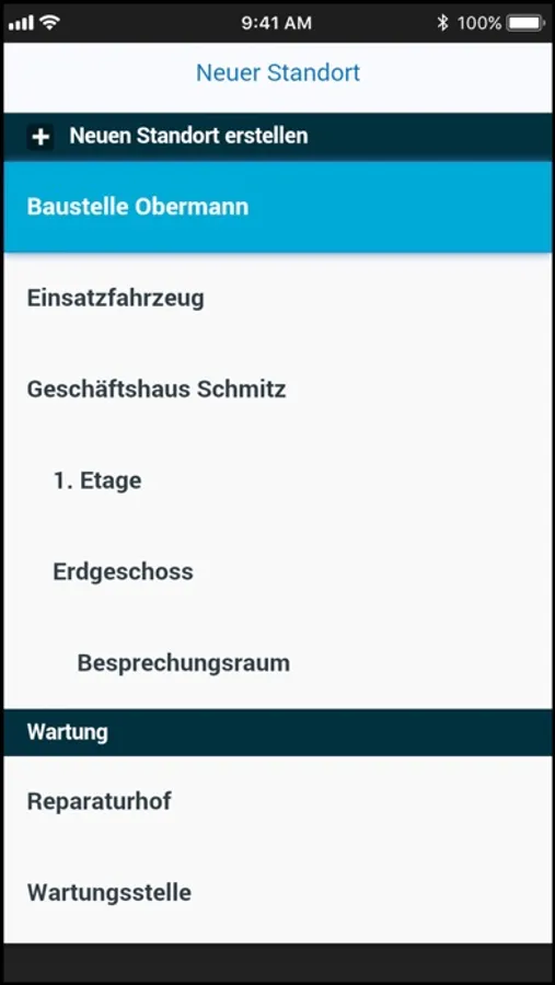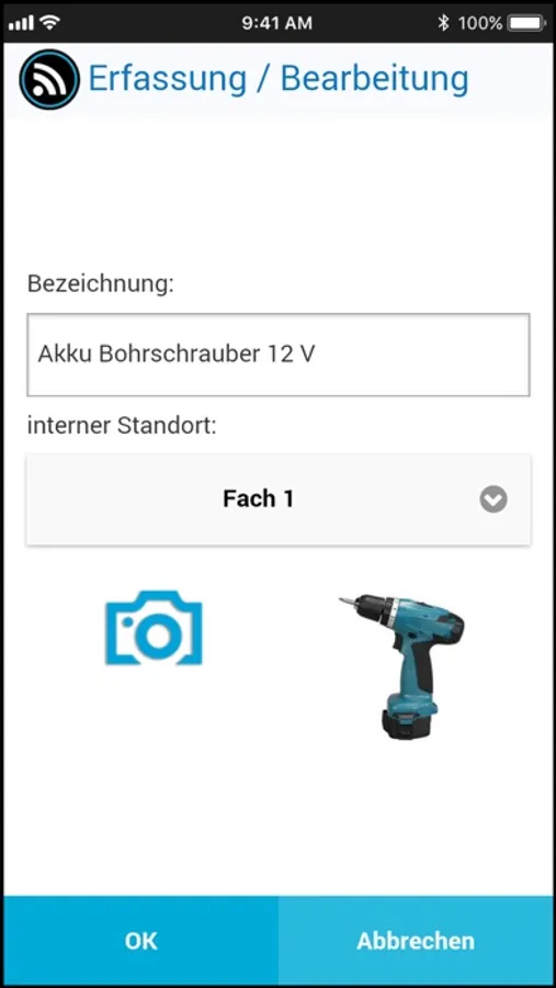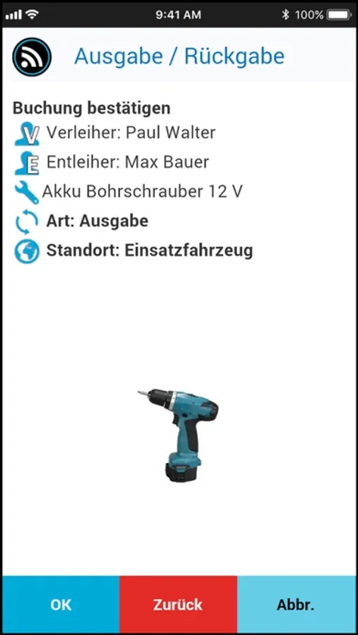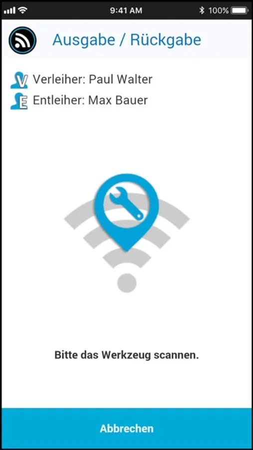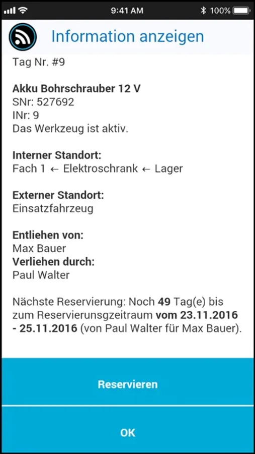 Hier können Sie die App auch nutzen, um die Standorte, Werkzeugbezeichnungen und Entleiher abzufragen.