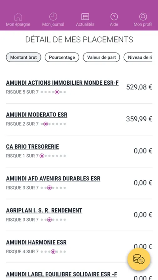 - Le détail complet de vos plans d’épargne et l’historique de vos opérations