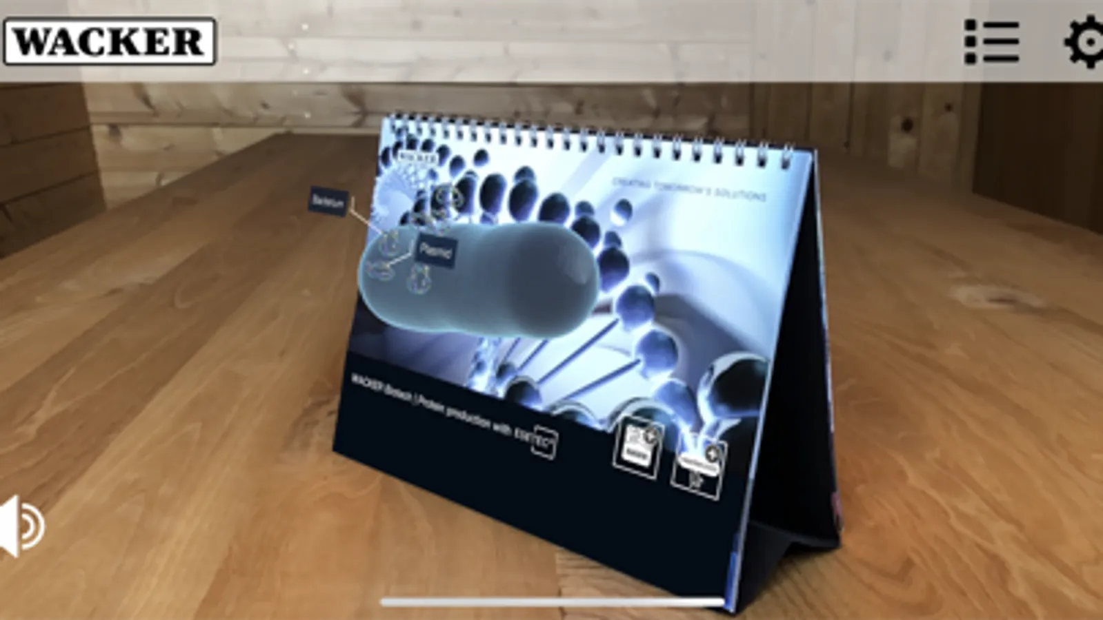 Open our WACKER Square AR app. Hold your smartphone or tablet over one of our AR-enhanced media and enjoy: 3D animations, films, amazing sound quality and much more await you.