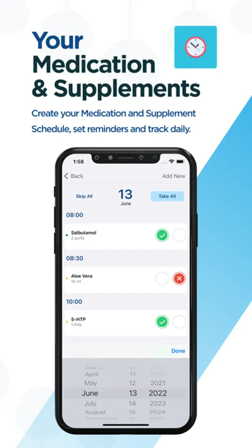 Track your vital signs and measurements, with over 40 different inputs available. Monitor how things change over time such as Blood Pressure, Heart Rate and more.