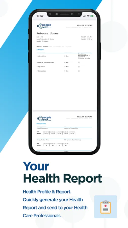 Generate your PeopleWith Health Report in a single document that you can easily share with your healthcare professionals.
