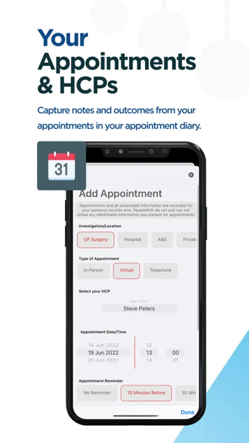 Record your health care professionals details, create your appointments & set reminders. Capture notes and outcomes from your appointments to create a full picture of each interaction.