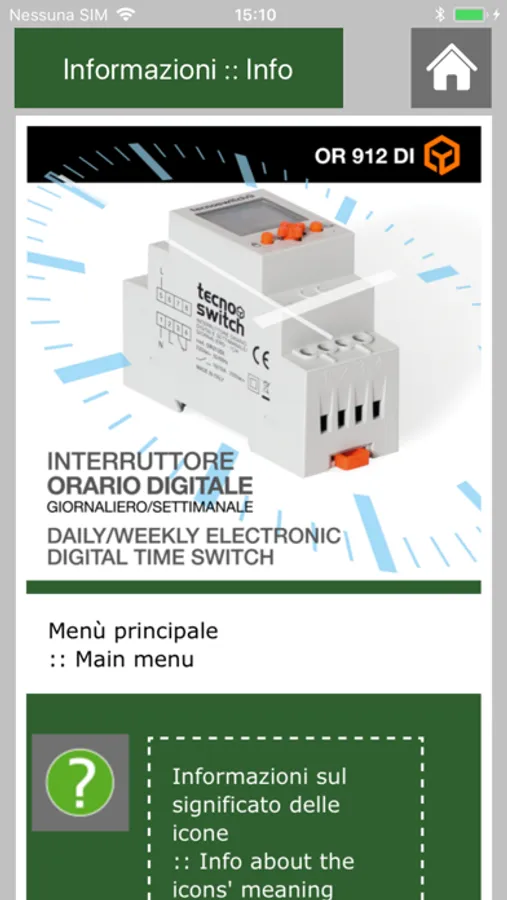 Il nuovo Orologio Settimanale OR912DI della Tecnoswitch Srl può essere programmato, oltre che con il classico sistema display-joystick-pulsanti, anche tramite questa App appositamente realizzata per il prodotto e resa disponibile gratuitamente su Apple Store.