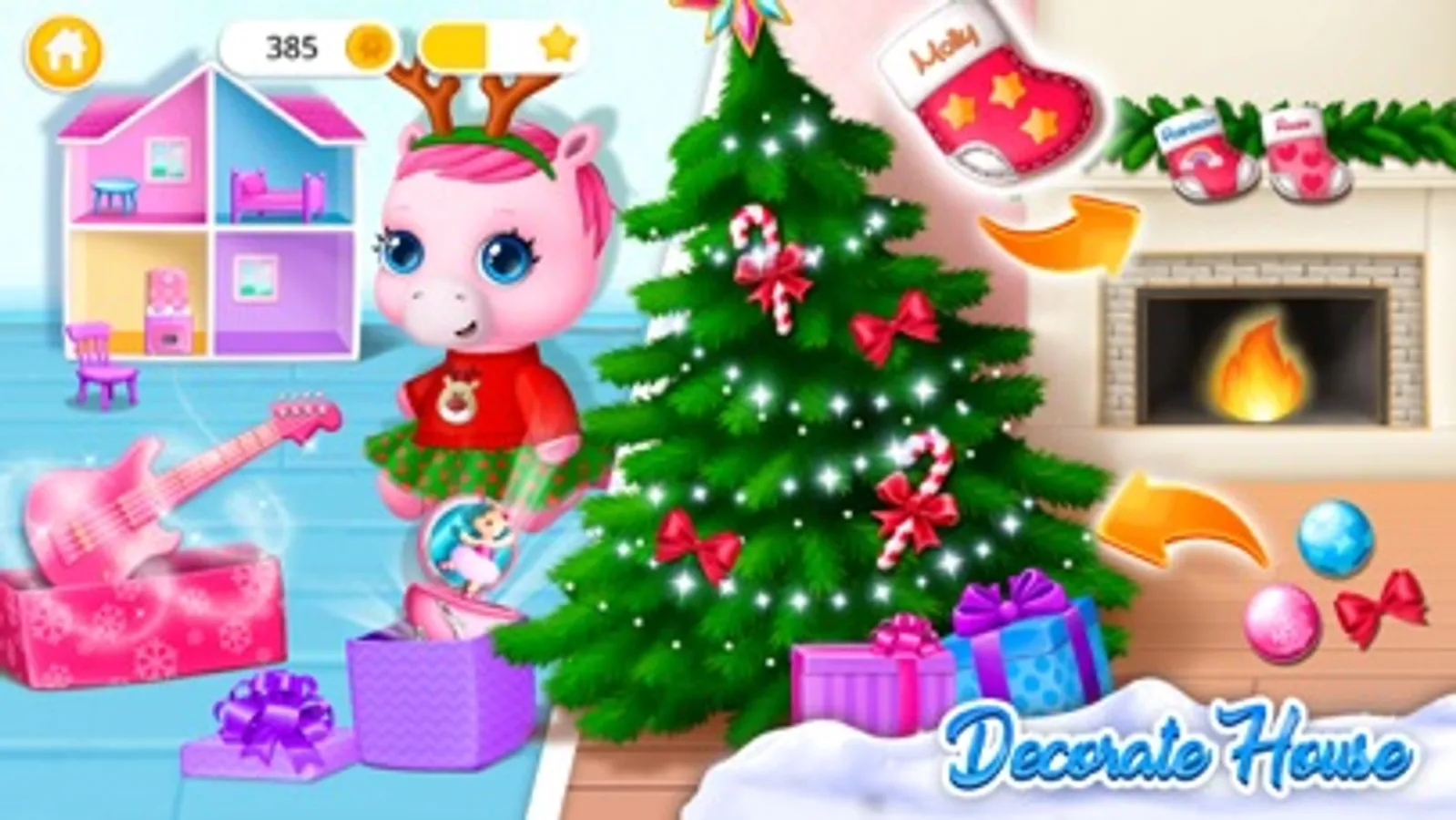 · Decorate a Christmas tree, sit with pony sisters by the fireplace and make a wish!