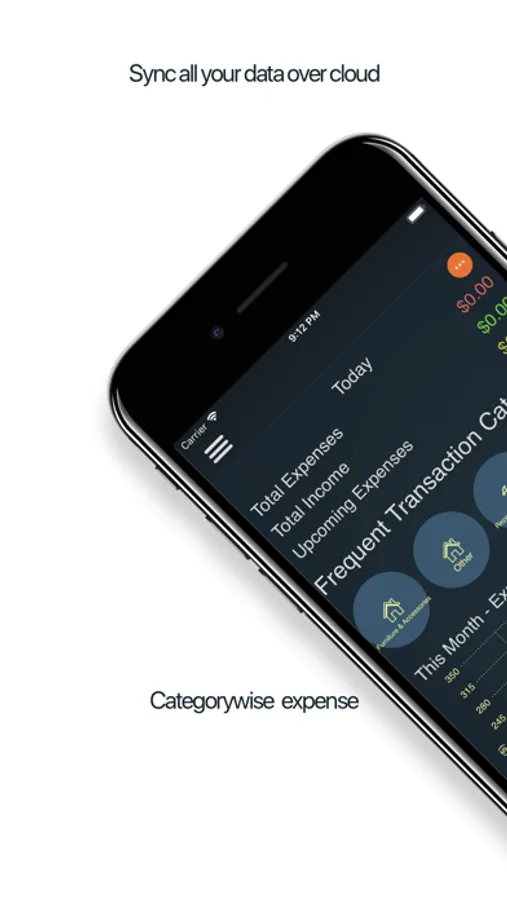 - Quick view of today’s transactions and monthly expense chart right on home screen.