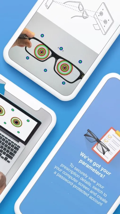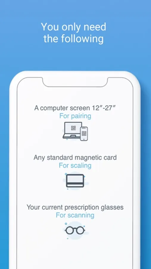 >Download the app and scan your current glasses using only a smartphone, a computer screen and magnetic card.