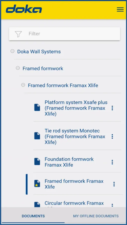 Navigate through the formwork systems to find the document you need. You can view the document or also download it so that you have it at hand, if there is no LAN or WLAN.