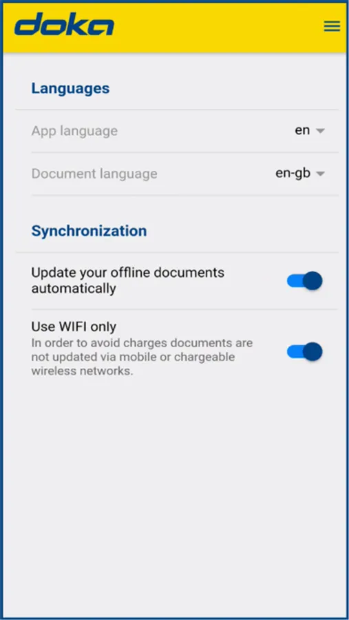 Under the menu button "My offline documents" you can see an overview of your favourite (offline) documents.