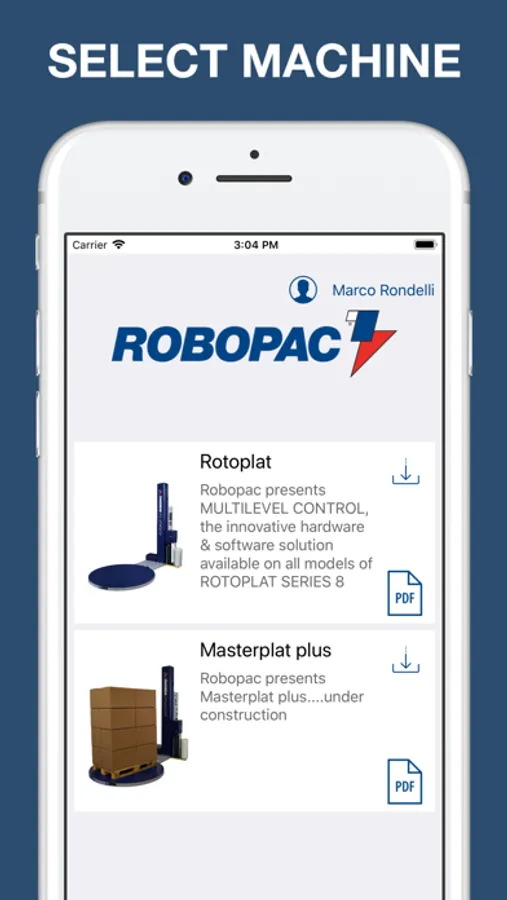 You can use “ROBOPAC HMI” on any type of device to simulate the operations of the main control panel and human interface on Robopac machines like Rotoplat and Masterplat Plus series and with its latest upgrade, even on Robot S7.