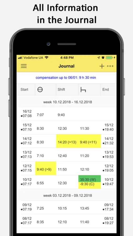 The app has a convenient journal where all your shifts are automatically recorded, so you no longer need a notebook for shift records.