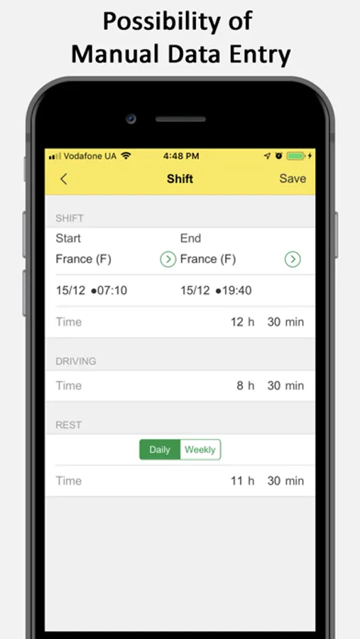 When following instructions and prompts, the Tachograph app will not allow violation of work and rest schedules.