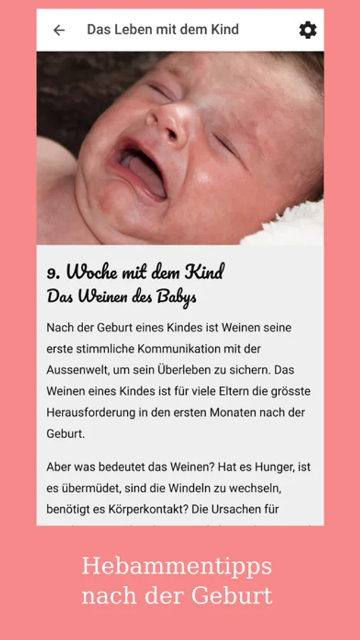 Du bist schwanger oder hast gerade dein Kind zur Welt gebracht? In dieser App findest du Woche für Woche Antwort auf deine Fragen zu Schwangerschaft, Stillen, Wochenbett oder Rückbildung. Mit Hebammentipps von Astrid Di Bella hast du deine Hebamme immer mit dabei!