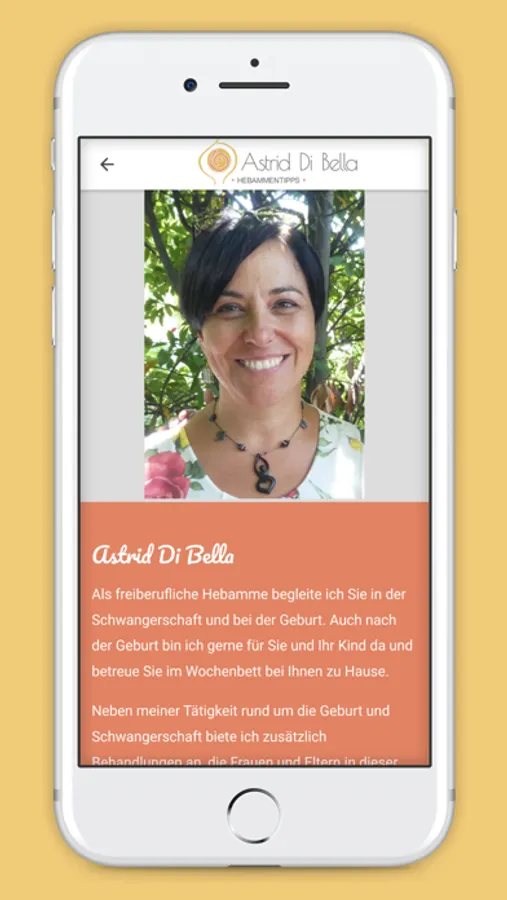 Jede Schwangerschaftswoche bekommst du aktuelle Informationen und wichtige Tipps aus dem Hebammenalltag. Auch nach der Geburt begleitet dich die App noch die ersten drei Monate mit vielen hilfreichen Informationen. Hebamme Astrid Di Bella hat 18 Jahre Berufserfahrung hinter sich in verschiedenen Krankenhäusern, auf dem Territorium und als Hausgeburtshebamme. Ausserdem fließt auch ihr Wissen als Still- und Laktationsberaterin IBCLC und Emotionelle Erste Hilfe Fachberaterin EEH mit ein.