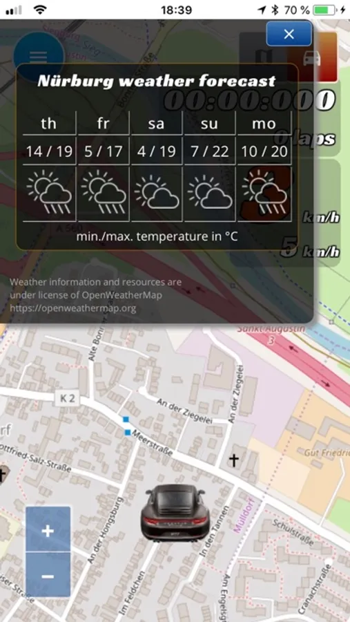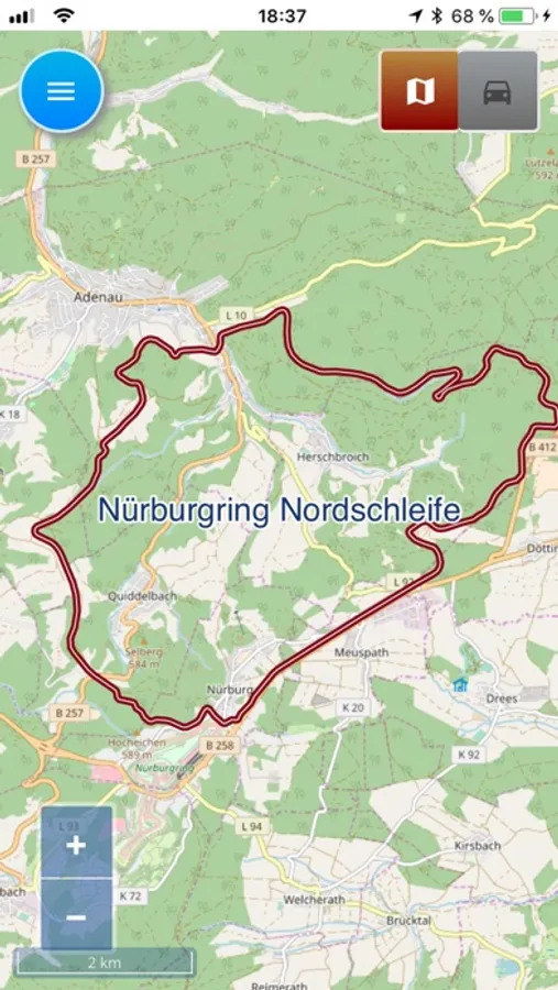 Consider that this app shows its real power when you are driving on the Nürburgring Nordschleife. Outside the track it is just a map tool.