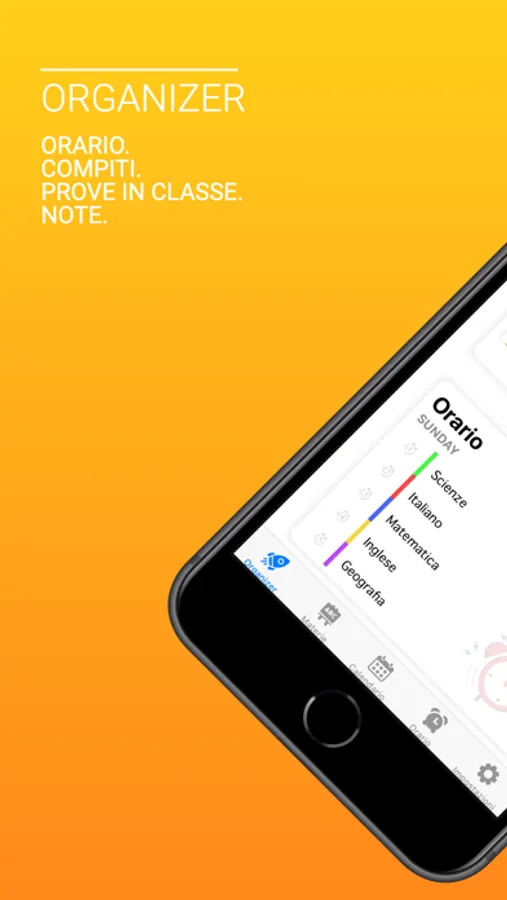 • ORGANIZER: tieni sotto controllo in un unica schermata l’orario di oggi, i compiti per domani e le prove della settimana.