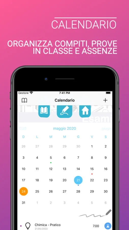 • Aggiungi e gestisci le tue prove in classe, i compiti a casa e le assenze.