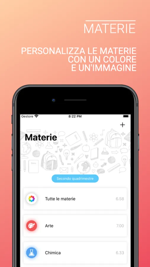 • Crea le tue materie personalizzandole con un’immagine, un colore e altre informazioni aggiuntive.