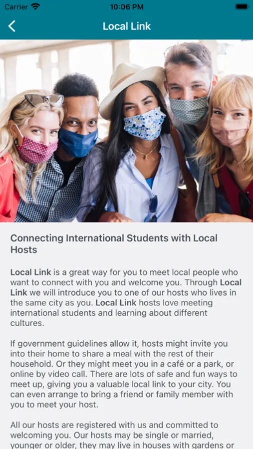 Our app provides a way to register with our popular free hosting scheme. This is a great opportunity to meet friendly local people and enjoy spending time in their home with a meal.