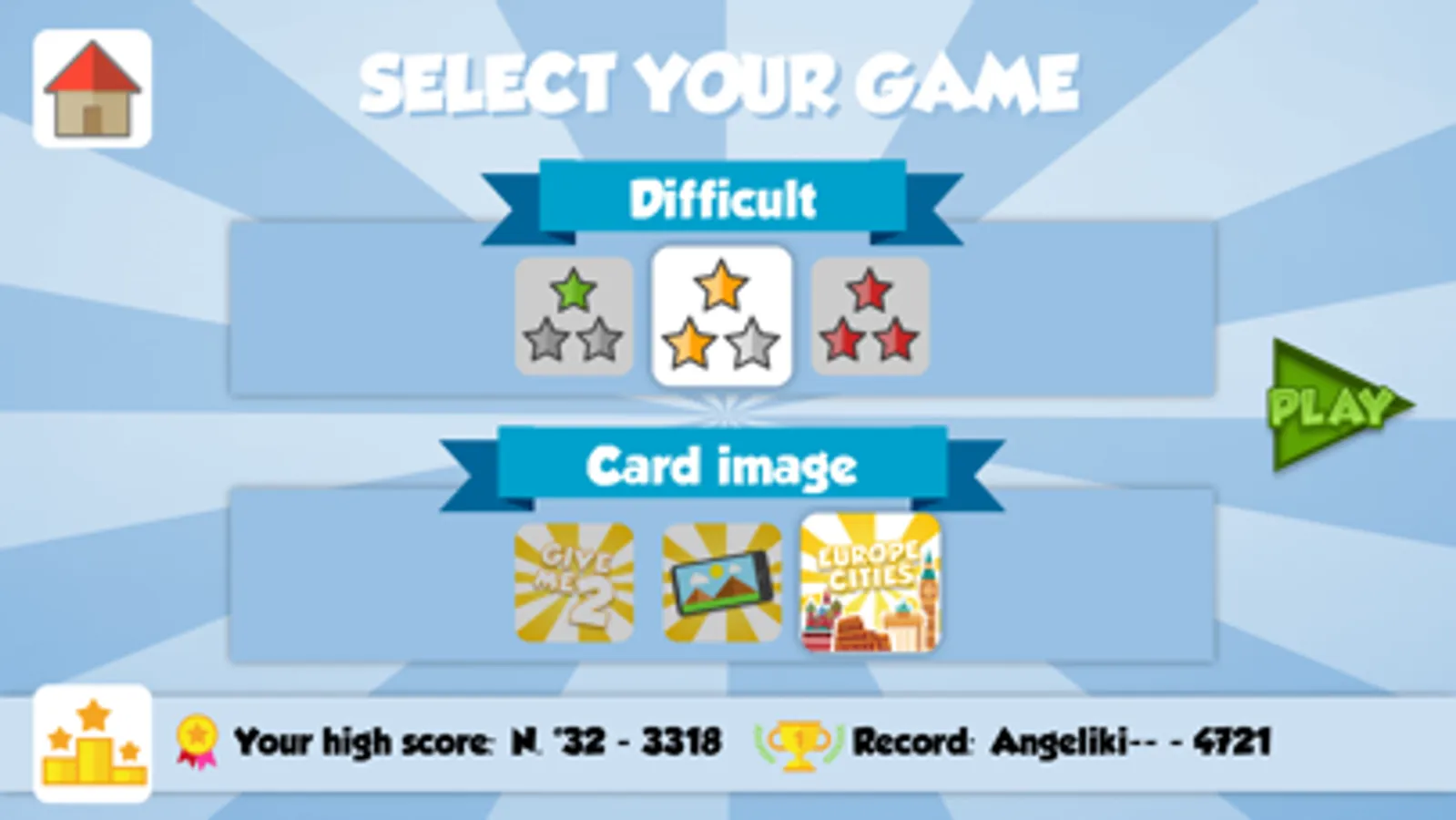 · RANDOM mode: The cards will move form their place. Will you be able to find them before the time runs out?