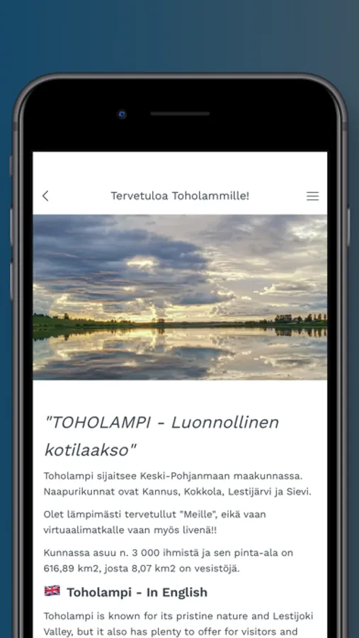 Tämä ilmainen Toholampi -sovellus tuo ajankohtaiset tiedot kunnan tapahtumista, palveluista ja uutisista puhelimeen helppokäyttöisellä ja laitteiden ominaisuuksia tehokkaasti hyödyntävällä tavalla!