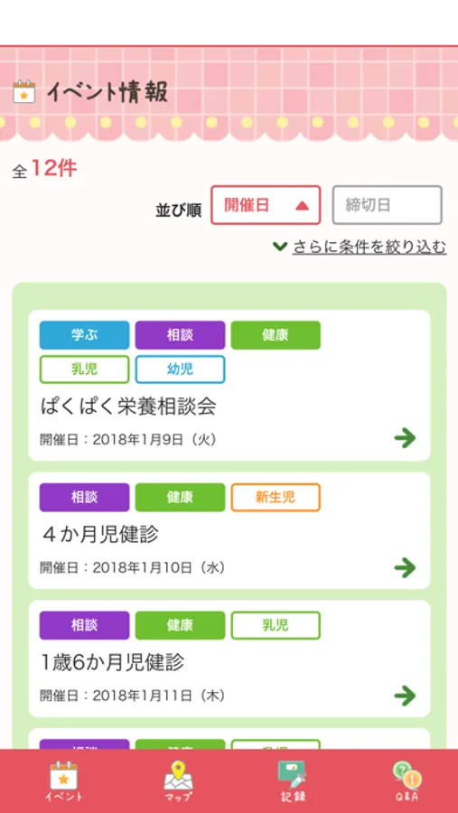 忘れがちな予防接種や健診もプッシュで通知が届きます。