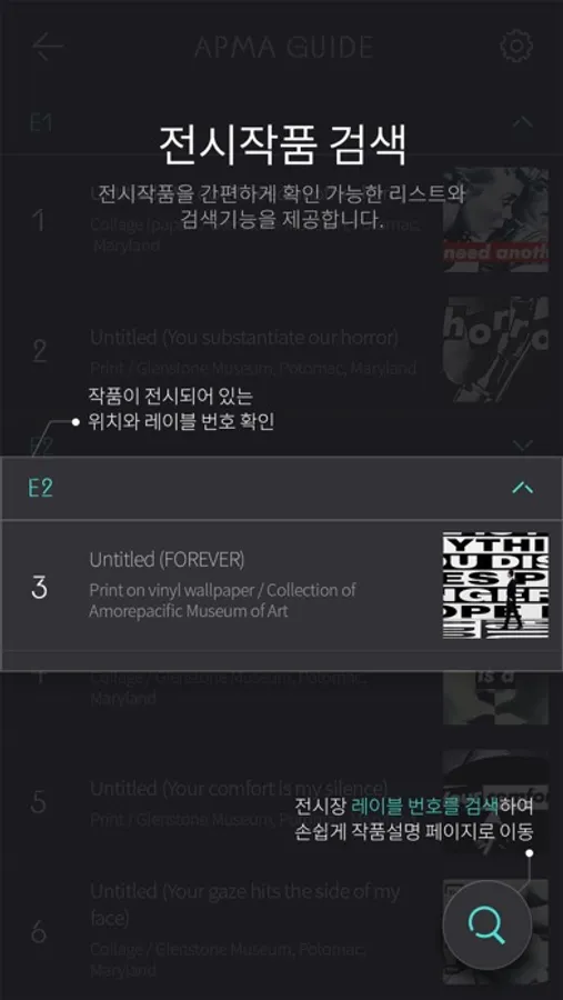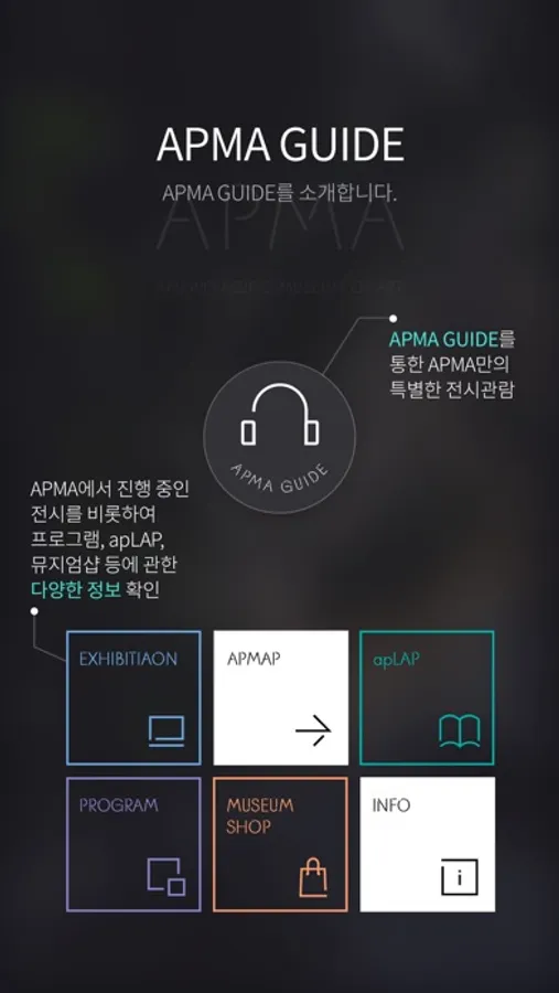 모바일의 기능과 성능에 최적화된 전시 관람용 APMA GUIDE