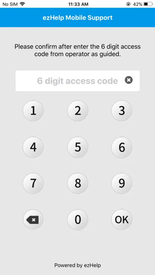 Step 2. Enter the access code (6-digit number) and Tap the OK button.