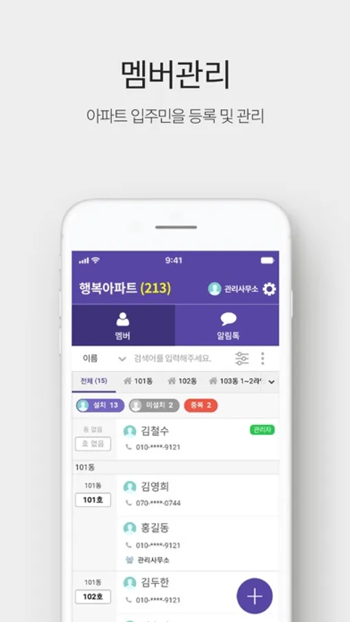 아파트 공지사항(승강기점검, 청소 등)을 오이톡 또는 문자를 통해 동별/라인별로 선택하여 휴대폰으로 알림