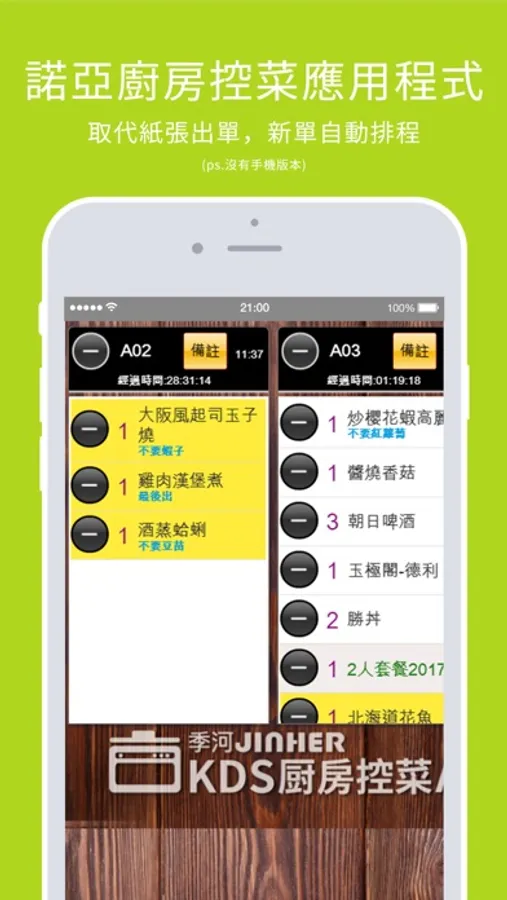 少了出單機的廚房,看起來更乾淨更清爽,同時透過KDS廚房控菜APP代勞排單畫菜,廚師不需要放下手邊工作,可以保持自己的步調出餐,同時與總菜口控菜的情況可以同步顯示,避免忙餐時雞同鴨講的問題發生!失誤率降低效率提升!