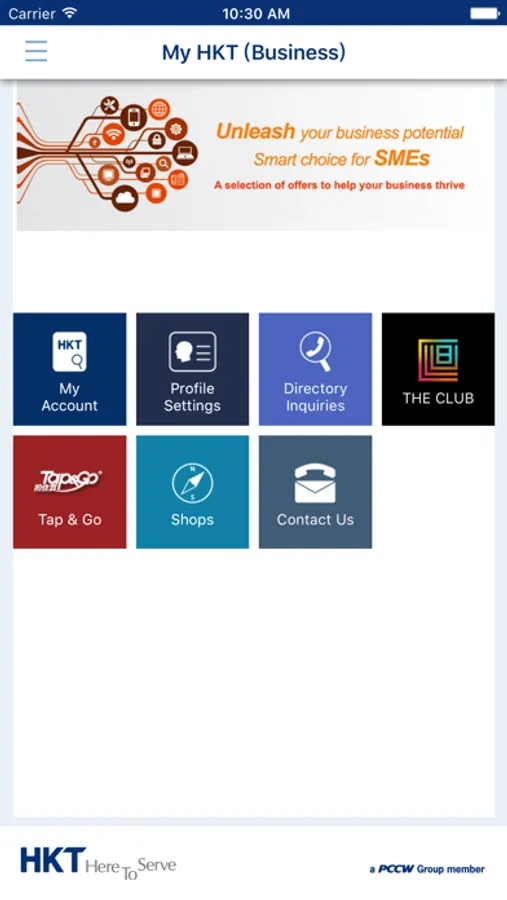** “My HKT (Business)” is currently designated to serve SME customers. If you have any enquiries, please contact your dedicated Account Manager (if applicable) or our hotline 10088.