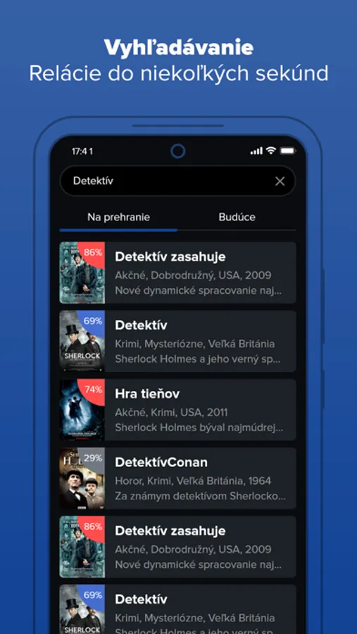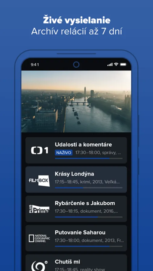 - Živé televízne vysielanie s možnosťou prehrania od začiatku
