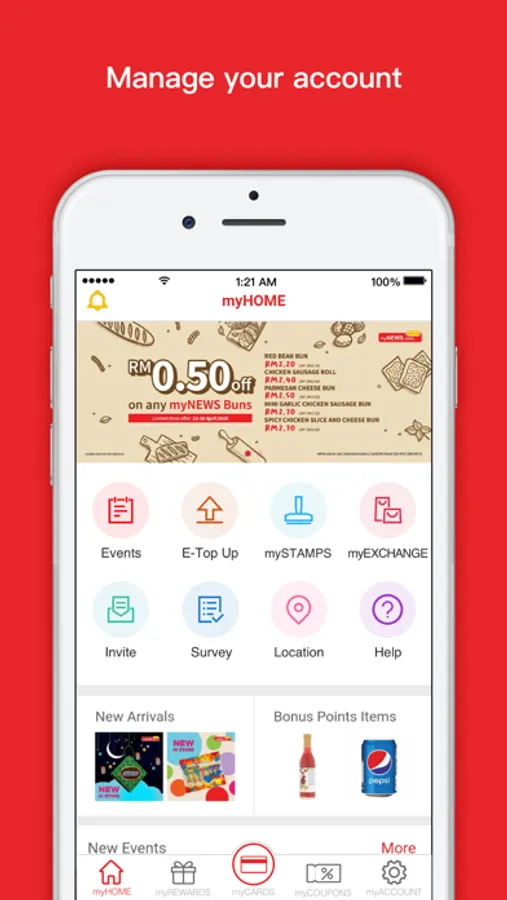 Easily track and manage your myPOINTS*, myREWARDS, card balances, funds transfer and transaction history on myNEWS MY App.