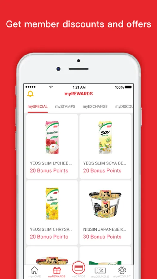 Get special member's price, offer and bonus points* on selective merchandises. Also, turn your myPOINTS* into coupons for further discounts and offers.
