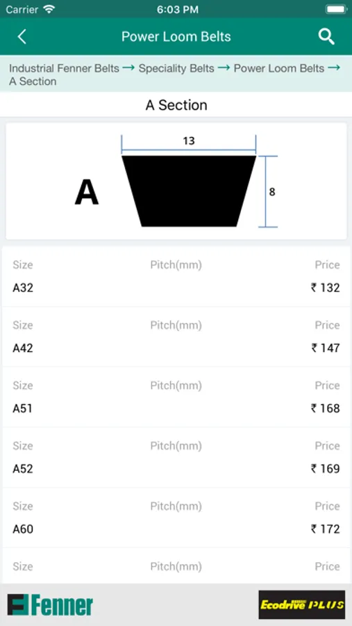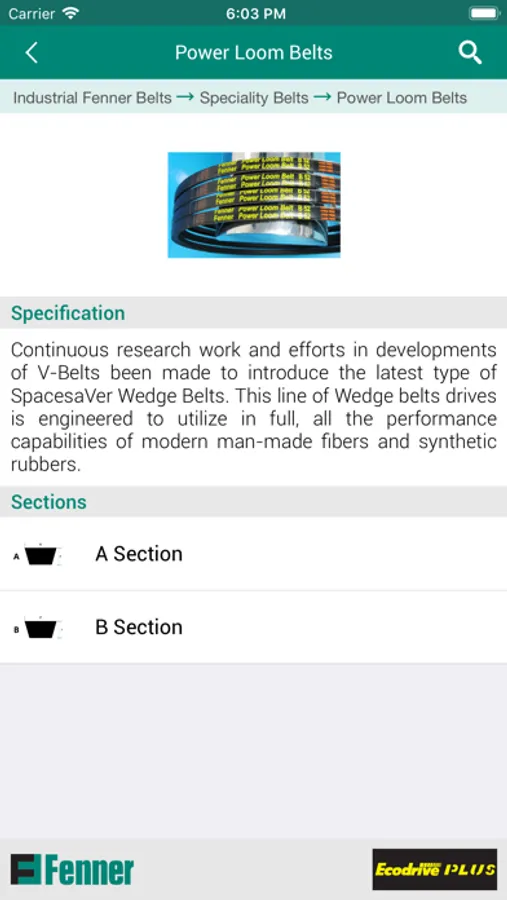 In this application you will find all of the information about the Industrial V Belts Domestic Products such as Fenner V Belts and Eco Drive Plus V Belts.