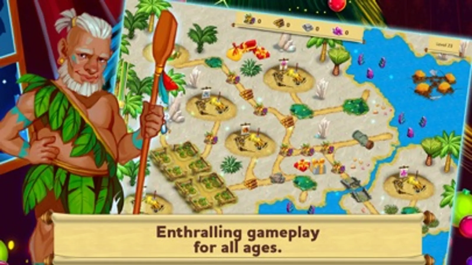 Your loyal subjects need your help! Join the heroine and her friends on a new adventure through incredible places: a crystal cave, a village of tribal fishermen and many others! Secrets, mystical creatures, mysterious events – all this awaits you in the exciting casual fantasy strategy Gnome Garden: Christmas Story. A multitude of varied quests, over 40 levels, an intriguing plot, simple and entertaining gameplay and an unusual universe await you right now. Grow tree decorations, manage resources and construct buildings regardless of weather and the mercury level. Feel like a kingdom builder and a Caesar among strategists! Be a pioneer and first settler of magical, incredible lands. Help restore tribal villages and towns after disaster and return the spirit of the holiday to the townspeople in the capital of the Gnome Kingdom. Simple game controls and an easy-to-understand tutorial will help you master the basics of the game.