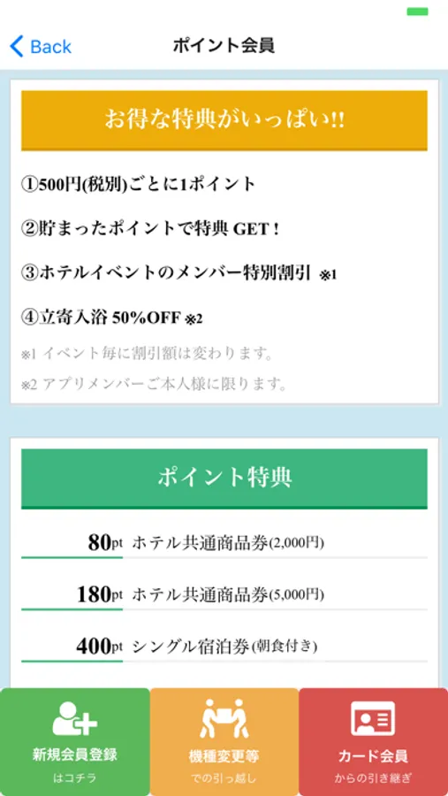 会員機能が新しく追加され、ホテルでQRコードをかざすとポイントが付与されます。